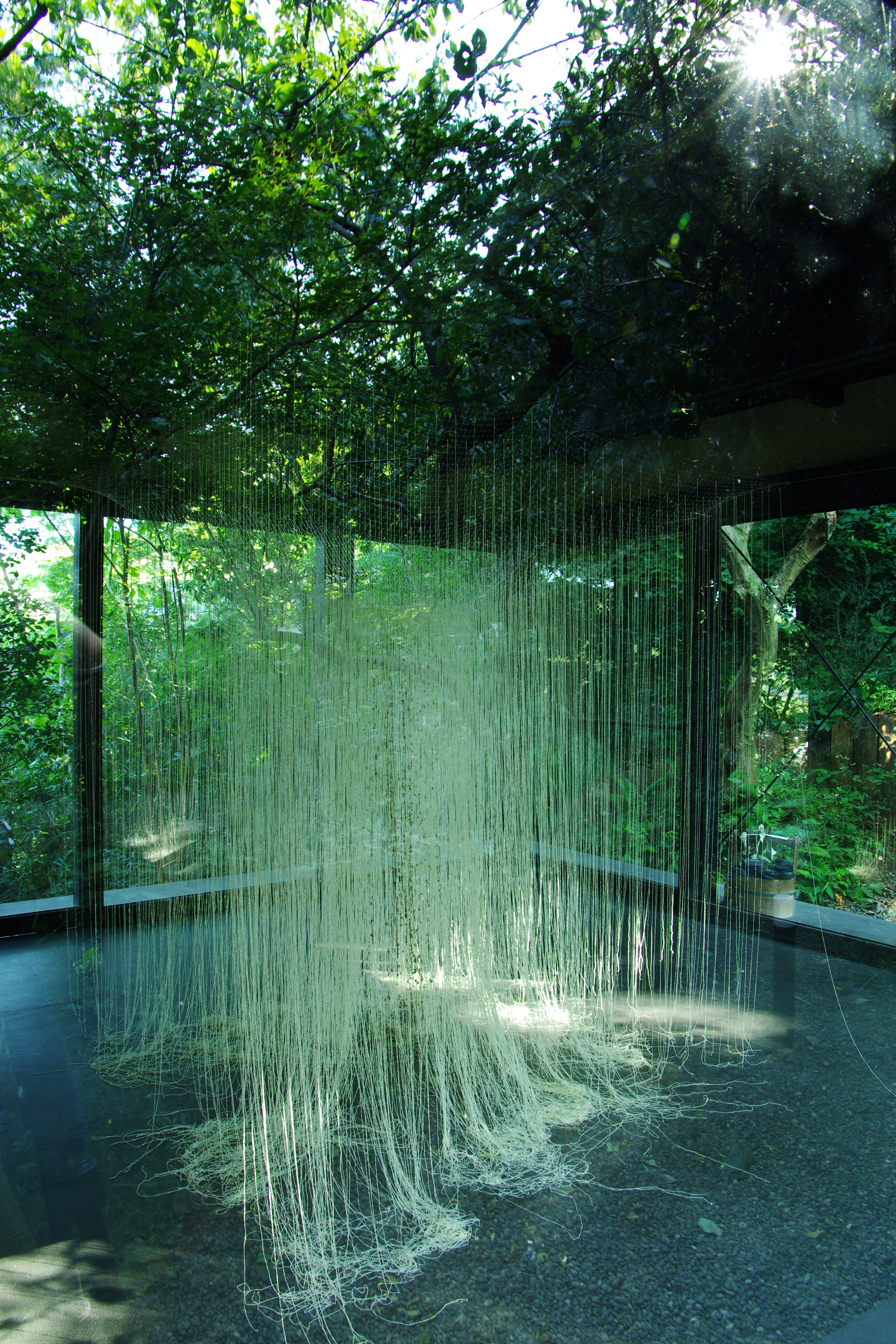 ミツロウの糸は自らの重みで次第に姿を変え、時間の経過で様々な景を映します。訪れる人もようやく増え、少しにぎやかになりました。私はこの幸せな時間をもう少し味わいましょう。