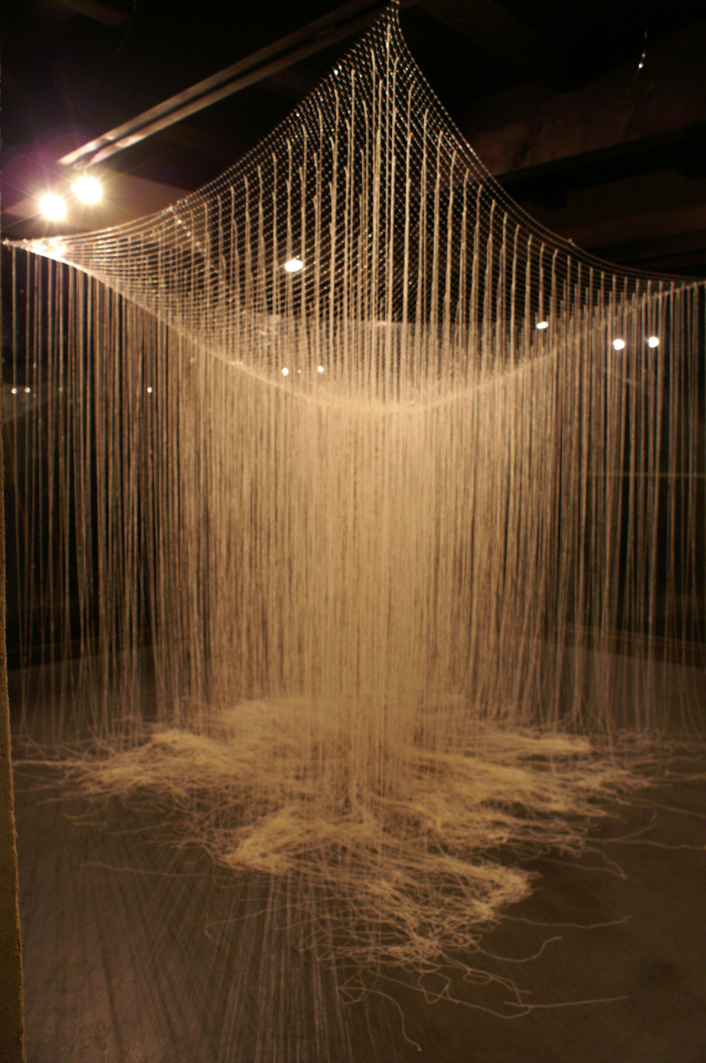 ポラリスでの個展最終日天井から吊っていたテグスを4か所切断。
