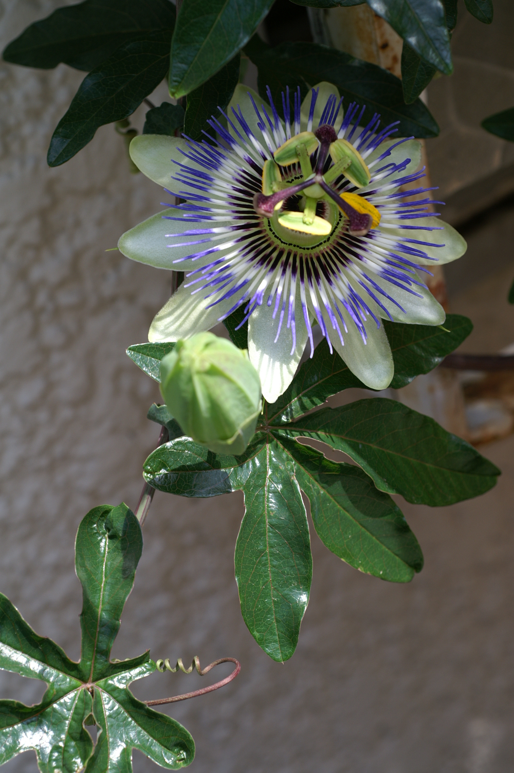 時計草の花が咲いた!10年前に一度咲いたきり毎年弦を伸ばすだけだった。そういえば昨年自宅の隣地が駐輪場になるので、キッチンの眼隠しのため移植したのだった。太陽の光が10年間足りなかったのねー。他に蕾が15個ある。次々咲くのだろうけど、家の横手なので、見えないのが残念。